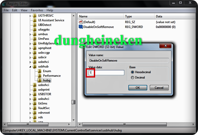 Tìm đến đường dẫn sau: HKEY_LOCAL_MACHINE\SYSTEM\CurrentControlSet\Services\usbhub.